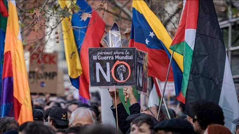 وبالقرب من السفارة الأمريكية في مدريد، ندد مساء أمس الأحد نحو 200 شخص بالتدخل الأجنبي في فنزويلا، في حين خرج في أماكن أخرى من العاصمة الإسبانية أفراد من الجالية الفنزويلية للاحتفال بما اعتبره فجرا جديدا لبلادهم، عقب إطاحة واشنطن بالرئيس الفنزويلي.
