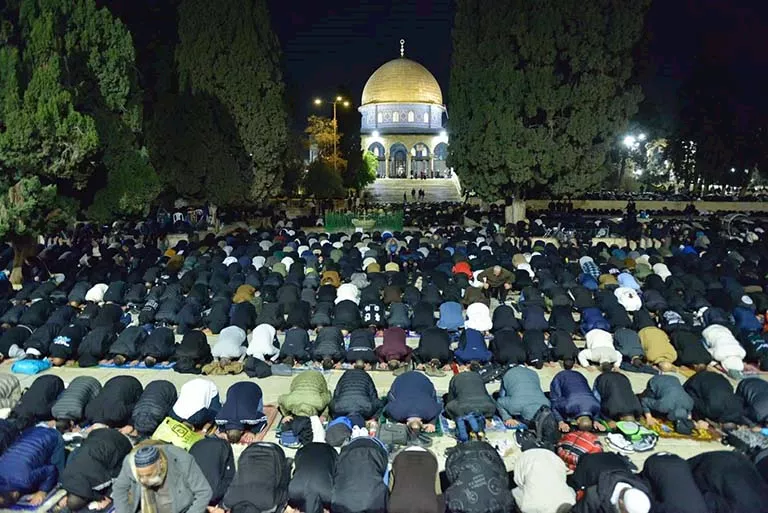 مصلون بباحة المسجد الأقصى