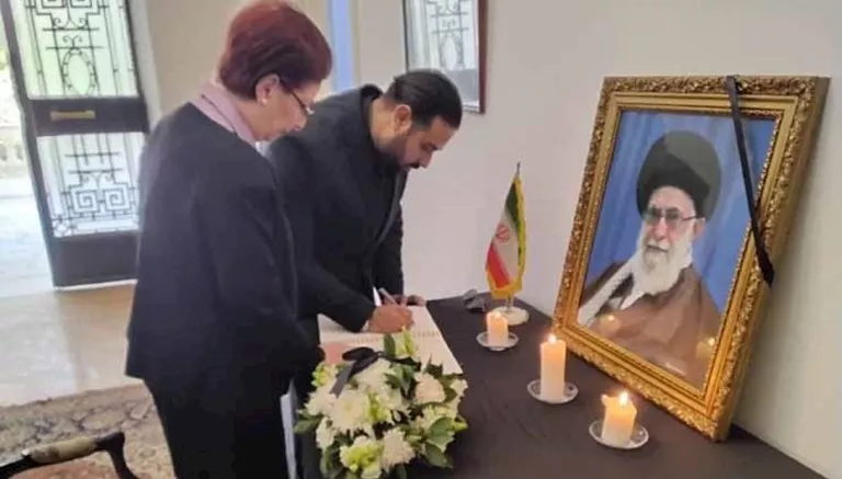 شهد مكتب رعاية المصالح الإيرانية، حضورا لافتا لتسجيل كلمات التأبين في الدفتر المخصص لذلك، حيث عبر المشاركون عن تضامنهم الكامل مع إيران في مصابها الأليم.