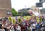 ورفع المشاركون لوحات صفراء عليها الأصابع الأربعة الشهيرة، مرددين هتافات معادية للجيش والشرطة، منها ''يا إبراهيم قول للسيسي نهايتكم على إيدي''، و''الداخلية بلطجية''، و''يسقط يسقط حكم العسكر''، و''البورسعيدية فين الإخوان أهم''.