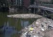 بالصور.. أطنان القمامة تغطي مياه بحر شبين الكوم
