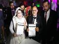 بالصور..عروسان يوقعان استمارة "علشان تبنيها" بحفل زفافهما في بورسعيد