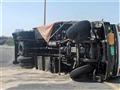 احترقت سيارة نقل بمقطورة اثر انقلابها على طريق "القاهرة - إسكندرية" الصحراوي، عند الكيلو 62.