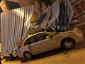 بالصور..تحطم سيارة سقطت عليها مظلة بسبب شدة الرياح في بورسعيد