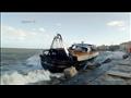 وتواجه سفينة صيد الغرق بعدما حركتها سرعة الرياح وارتفاع أمواج البحر من الميناء الشرقي إلى شاطئ المنشية، وفقد طاقمها السيطرة عليها لتتخبطها الأمواج في الصخور.
