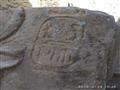 أما عن الرأس التي تم العثور عليها بالممر الخارجي الخلفي للمعبد، فلا تزال تحتفظ بآثار للألوان حيث تظهر بقايا اللون الأحمر على الوجه واللون الأصفر على الجبين عند بداية التاج، كما يزين الجبين حية الكوبرا رمز الحماية الملكية، ويبلغ ارتفاعها حوالي 70 سم وعرضها 56 سم تقريبا بينما يبلغ سمكها حوالي 30 سم تقريبا.