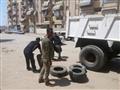 بالصور.. استمرار جمع إطارات السيارات المستعملة لمنع حرقها ليلة شم النسيم ببورسعيد