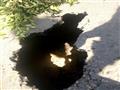 بالصور- انهيار أرضي بطريق "كورنيش النيل" في دمياط
