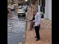 بالفيديو والصور - مواطنون يتغلبون على الظروف بالفكاهة.. يصطادون بـ"سنارة" في شوارع بورسعيد