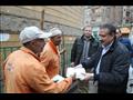 بالصور - محافظ المنوفية يوزع وجبات ومكافآت لعمال شفطهم مياه الأمطار