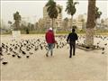 رغم الطقس السيء.. الحمام يجذب الأنظار بميدان الشهداء في بورسعيد- فيديو وصور