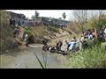بالصور- جذوع نخيل وسط مياه الترعة.. قصة بسالة أهالي في نقل مصابي حادث القطارين