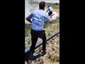 بالفيديو.. سائق قطار يترجل لإطفاء حريق بجانب شريط السكة الحديد بقنا