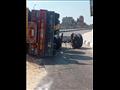 بالصور.. انقلاب سيارة محملة بالرمال أعلى كوبري منية سندوب في المنصورة