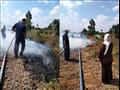 توقف حركة القطارات.. وحريق محدود بجوار شريط السكة الحديد في المنوفية.. صور