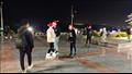 وتجمع عشرات الشباب والأطفال وسط الكورنيش، و قرروا الاحتفال على طريقتهم الخاصة، مستقلين "الاسكيت" وطواقي بابا نويل، واللعب بها وسط بهجة وضحك، كما قاموا بتوزيع الهدايا والشيكولاتات على المواطنين والمارة بطول شارع الكورنيش.
