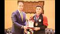 بالصور- محافظ الفيوم يكرم الرباع محمود جمال بطل العالم فى رفع الأثقال للناشئين