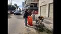 صور.. طاقم أكبر مكتبة عائمة في العالم ينظفون شارع فلسطين في بورسعيد