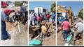 بالصور- إصلاح كسر ماسورة مياه بطريق القباري في الإسكندرية