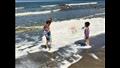 بالصور- مصطافون يمرحون وسط زبد البحر على شواطئ بورسعيد