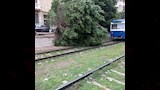 بسبب عواصف "باقي المكنسة".. سقوط شجرة على حرم ترام الرمل بالإسكندرية -صور