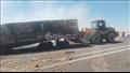 الجثث اختفت بعد 10 ساعات حريق.. تصادم مروع بين سيارتين نقل ثقيل بالوادي الجديد- صور