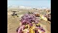 ألوانها زاهية.. أمواج البحر تلقي بقايا نباتات مائية على شاطئ بورسعيد (صور)