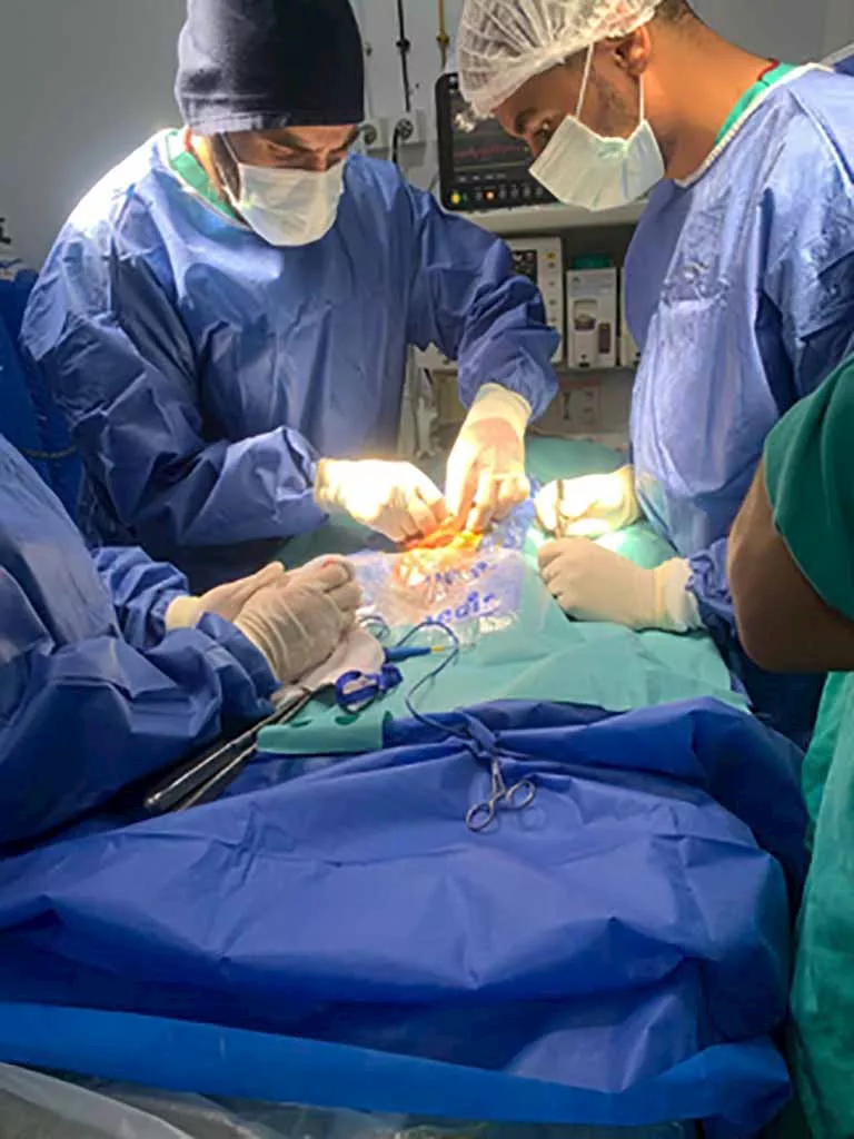 وخلال الفحص تبين وجود ثقب في الأمعاء الدقيقة للطفلة، ما استدعى تدخلاً جراحيًا عاجلًا لإصلاح الثقب، وأخذ عينات من الأمعاء، ثم إجراء توصيل بين الأمعاء الدقيقة وجدار البطن، وهي من العمليات النادرة التي تتطلب مهارة عالية في جراحات الأطفال.