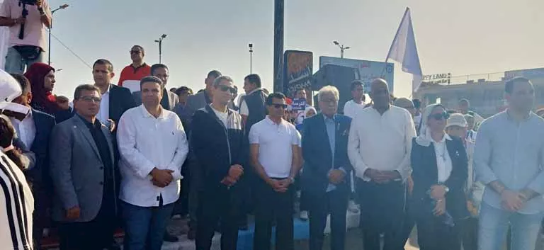 وزير الرياضة والمحافظ يشاركان في ماراثون للمشي بكورنيش السويس