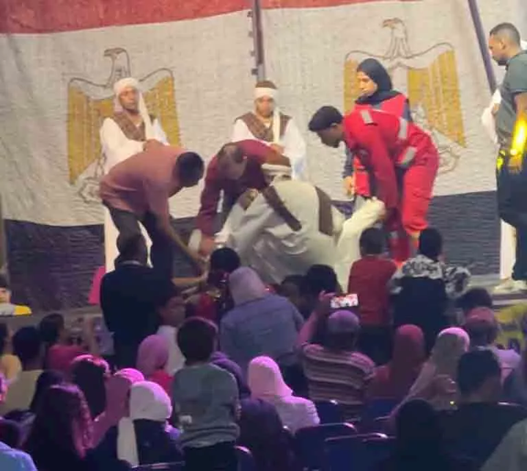 إصابة عارض من فرقة المنيا أثناء عرض بمهرجان الإسماعيلية للفنون الشعبية (صور)