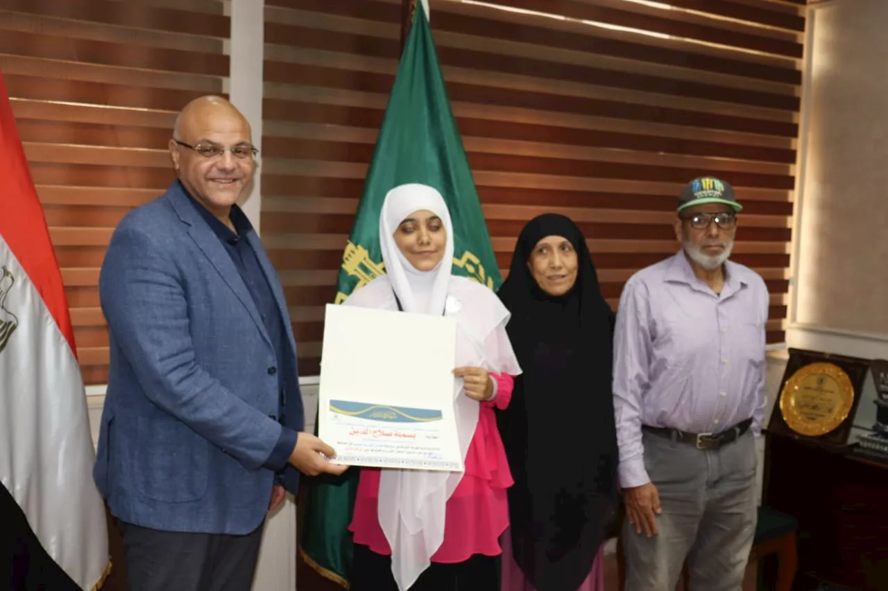 محافظ القليوبية يكرم طالبتين فازتا في مسابقة تحدي القراءة العربي بدبي -صور