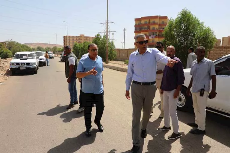 بالصور- محافظ أسوان يتفقد مشروع رصف الطرق الداخلية