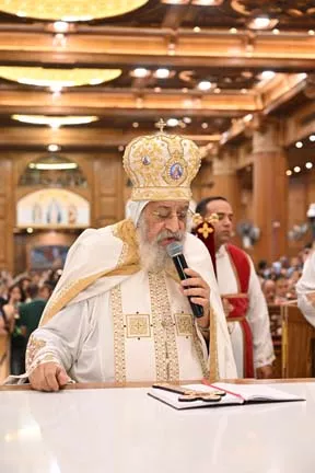وأزاح البابا فور وصوله الستار، عن اللوحة التذكارية لتدشين الكنيسة، والتقط الصور التذكارية وسط استقبال شعبي حافل، ثم توجه إلى داخل الكنيسة يتقدمه خورس الشمامسة مرتلين ألحان استقبال الأب البطريرك.