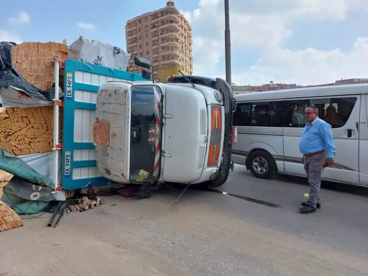 انقلبت سيارة نقل محملة بأخشاب بناء، اليوم الإثنين، على طريق القاهرة - الإسكندرية الزراعي في نطاق مدينة طوخ بمحافظة القليوبية، ما أدى إلى تعطل جزئي لحركة المرور دون وقوع أي خسائر في الأرواح.