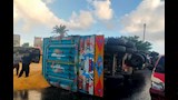 بسبب الأمطار.. انقلاب أتوبيس وسيارتي نقل ثقيل محملة بالغلال بالإسكندرية -صور