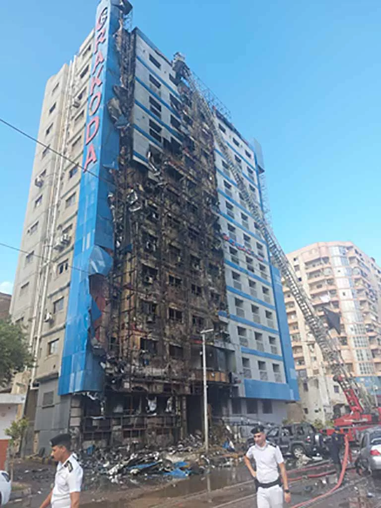 وانتقل اللواء أحمد حبيب، سكرتير مساعد المحافظة، نيابة عن المحافظ، وقوات الشرطة والحماية المدنية رفقة 24 سيارة إطفاء وإسعاف إلى موقع البلاغ، وتبين من الفحص نشوب حريق في الطابقين الثالث والرابع علوي بالمستشفى المكون من 12 طابقًا وامتداده لواجهة المبنى بالكامل.