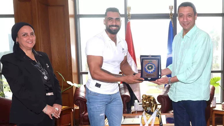 محافظ السويس يكرم بطل كمال الأجسام مايكل جمال
