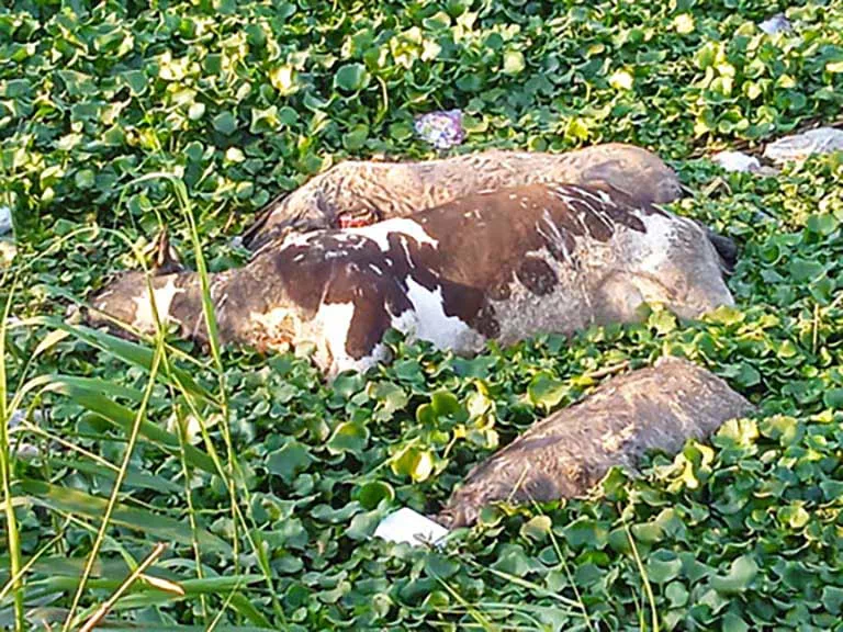 أطلق أهالى قريتى المحامدة والجمال، بمركز دمنهور بالبحيرة، صرخة استغاثة، طالبوا خلالها المسؤولين بالتدخل لإنقاذهم من كارثة بيئية تهدد صحتهم وحياة أطفالهم، نتيجة تراكم أعداد كبيرة من الماشية النافقة بالمصرف المائي وصلة "إيتاي / شبراخيت" التابع لهندسة صرف دمنهور.