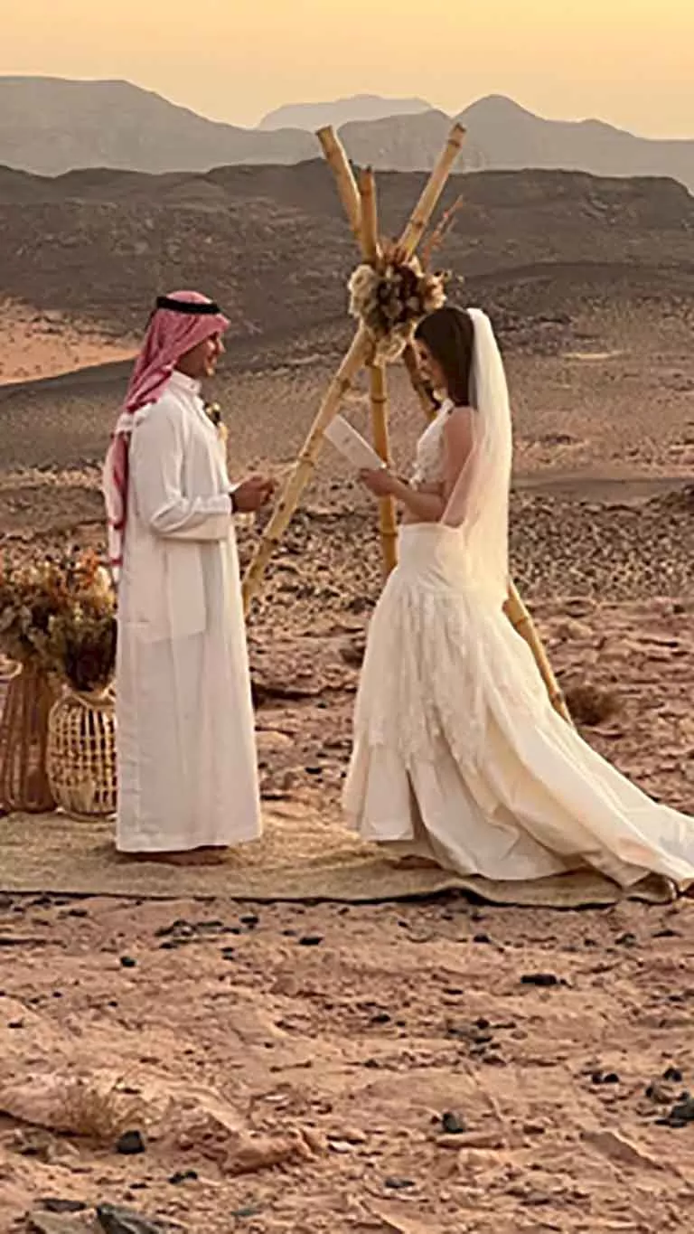 سائحان يتبادلان الوعود الأبدية في سيناء بـ "زفاف بدوي" غير تقليدي -صور