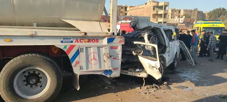 التريلا عجنت الميكروباص.. مصرع 3 وإصابة 18 في حادث مروع بالبحيرة - صور
