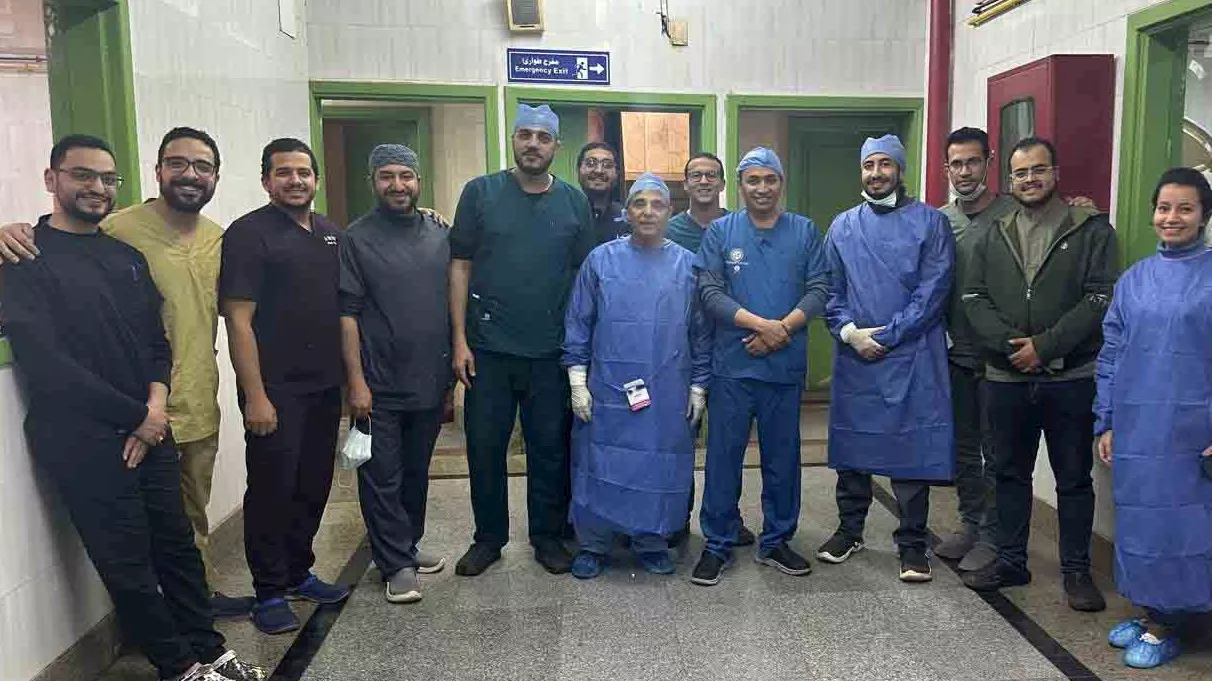 ضم الفريق الطبي من قسم جراحة التجميل الدكتور أحمد جابر عبد المجيد أستاذ مساعد، الدكتور ضياء الدين عبد الرحيم مدرس مساعد، الدكتور عبد الرحمن صالح طبيب مقيم، ومن قسم طب وجراحة العيون الدكتور علي محمود إسماعيل أستاذ بالقسم، الدكتور عمرو محمد حسن طبيب مقيم، ومن أطباء التخدير الدكتور محمود عادل مدرس مساعد، الدكتورة ميرل نصري معيد بالقسم التخدير، الدكتور أحمد عويس طبيب مقيم. فريق التمريض مستر على كاظم ومس سمر.