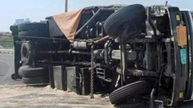 انقلاب سيارة نقل ثقيل - ارشيفية