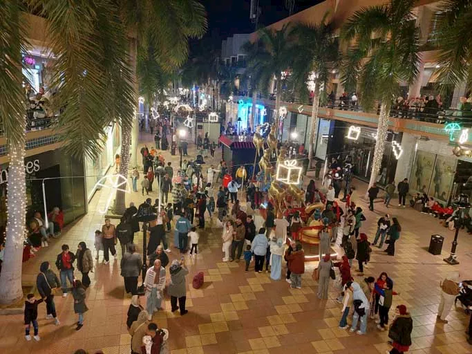 وتوافدت العائلات والشباب حول شجرة الميلاد الضخمة في ساحة جرين بلازا بمنطقة سموحة لالتقاط الصور التذكارية والمشاركة في لحظات الفرح، فيما امتلأت المقاهي والمطاعم وروّاد المولات التجارية للاستمتاع بالعروض الترفيهية والتسوق في أجواء احتفالية.