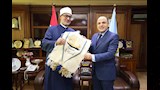 وفى نهاية اللقاء قدم اللواء دكتور علاء عبدالمعطي، محافظ كفرالشيخ، درع المحافظة، ونموذج من التراث "مشغول يدوي للوحة تراثية من الكليم لصناع فوه" هدية تذكارية للدكتور نظير عياد، مفتي الديار المصرية.