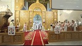 وعلى أصوات الترانيم جاب الشمامسة أرجاء الكنيسة، خلال القداس الذي ترأسه الأنبا باسيليوس، وسط حالة من السعادة والفرحة