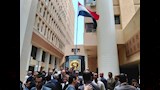 نظم المحامون في السويس وقفة احتجاجية داخل مجمع محاكم السويس احتجاجا على فرض رسوم على الخدمات المقدمة من محاكم الاستئناف الصادر بشأنها قراراً وصفه المحامين بأنه غير دستوري من رؤساء محاكم الاستئناف.