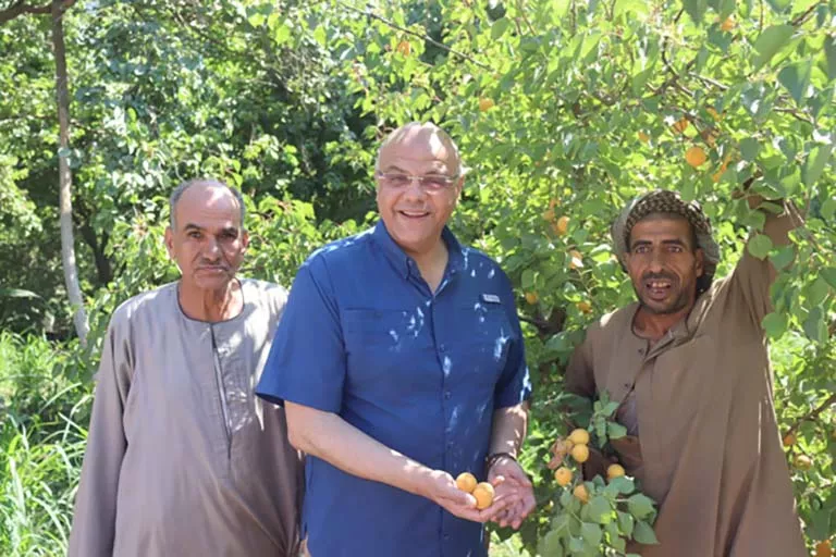 تفقد المهندس أيمن عطية محافظ القليوبية، حصاد مزارع المشمش بقرية العمار مركز طوخ، لدعم المُزارعين والاطمئنان على وفرة المحصول.