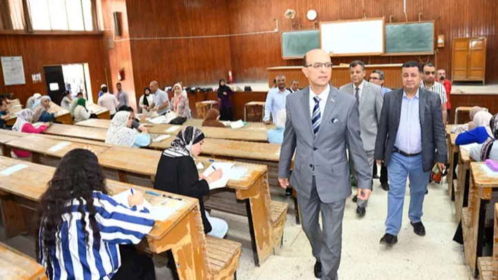 وتفقد رئيس الجامعة لجان امتحانات الفرقتين الأولى والثالثة بمختلف التخصصات، واستمع إلى آراء عدد من الطلاب حول طبيعة الأسئلة ومدى توافقها مع المقررات الدراسية، وظروف أداء الامتحان.