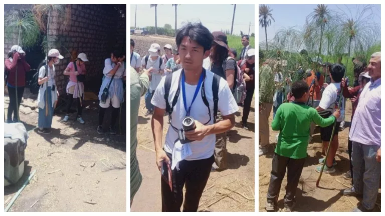 طلبة يابانيون يزورون قرية بالشرقية للتعرف على سر صناعة البردي -صور