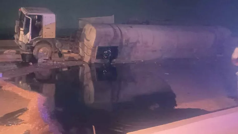 انقلبت سيارة نقل مواد بترولية على طريق "السويس - القاهرة" ولم يسفر الحادث عن أية إصابات أو حريق.